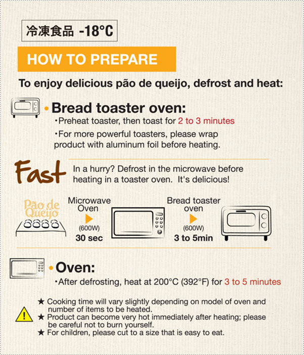 ·바쁘시다구요? 오븐토스터 이용 전에, 전자렌지에서 해동 후 조리 해보세요 더욱 맛있는 Pao de Queijo를 즐길 수 있습니다.
